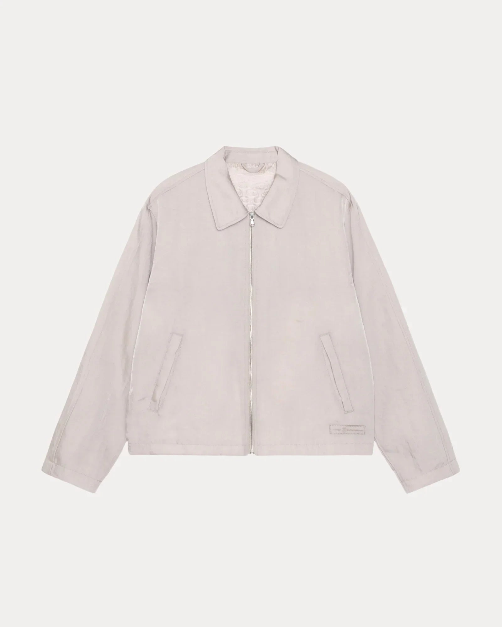 - Features a front zip closure, welt pockets and leather Stüssy logo patch